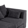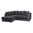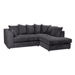 A grey jumbo cord corner sofa? Perhaps in brown? We have it both! Enjoy a lavish chaise corner sofa upholstered in the most pristine soft structured cord chenille fabric there is. Soft to the touch. Opulent and inviting in its visual appeal. Angular arms, a pared back and generously filled scatter cushions provide a very contemporary style statement. A sofa destined to become your old faithful. Choose from an earthy black and grey colour pairing or a warmer brown and beige pairing.